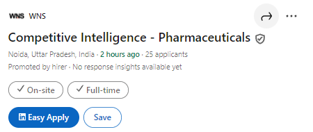 This role is best suited for individuals who have a passion for scientific research, data interpretation, and pharma market analysis. Candidates with a background in competitive intelligence, life science research, or pharmaceutical analytics will find this position particularly rewarding. WNS Hiring for Competitive Intelligence Pharmaceuticals