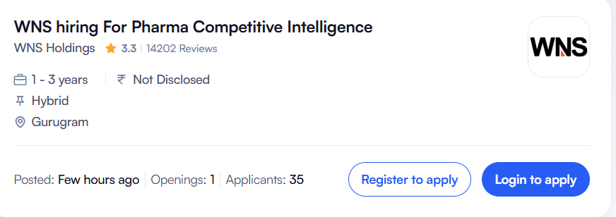 WNS Hiring for Pharma Competitive Intelligence Analyst in Gurugram. Apply now for CI research, pharma analytics, and market intelligence.